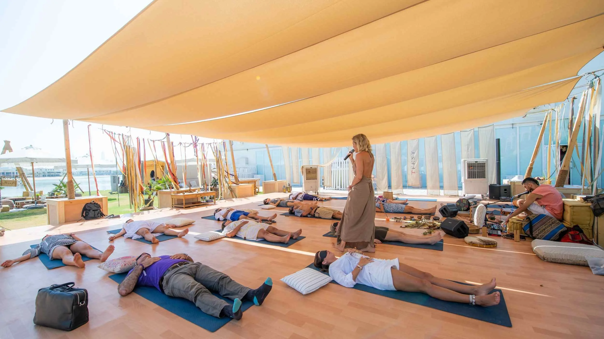 Agathe offered exactly what I needed at a moment in time when I didn’t realize I needed it. Morning yoga was the perfect way to start the day, especially in front of a sacred alter, with warm breezes surrounding us as we settled into the Zen Den tent in Dubai. However, it was the hour-long breath work and sound therapy sessions that cracked open my heart and let out the intense emotions that I had been holding onto, burying in my body, and trying to control during a year when I felt like I couldn't control anything else. Agathe’s healing energy is so powerful, paired with ancient rhythms played out on drums, chimes, rain sticks, and sound bowls, that when offered in such a safe space, it took no more than a few minutes before I was processing deeply by calling into my process the elders in my world, releasing stress through physical cries and audible sobs, and nurturing my soul by manifesting a new mantra for a new cycle. Without being conscious of it, I had stepped off my path and got lost in the world for a bit; spending even a short time with Agathe got me back on course, and refocused my intentions for the journey that is my life.